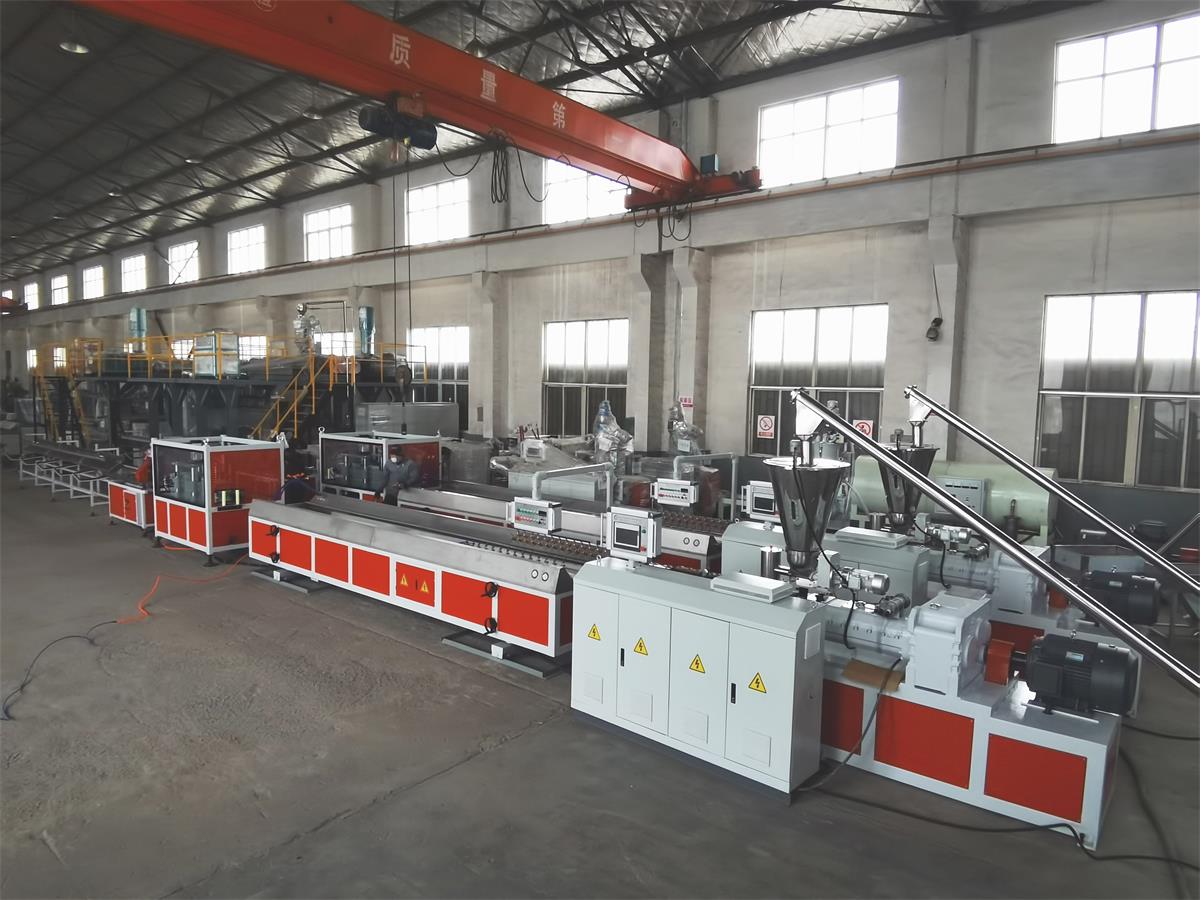 我公司生產的寬幅圍板由SJZ92/188-1000SZSJ80/156-1000錐形雙螺桿擠出生產線生產,窄幅圍板由SZSJ80/156-600SZSJ65/132-600錐形雙螺桿擠出生產線生產,輔材一般由SJZ51/105-240錐形雙螺桿擠出生產線生產.